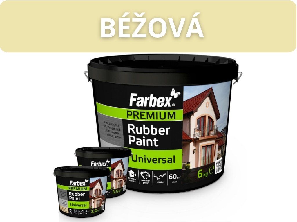 Gumová barva Farbex je vhodná pro nátěry střech, fasád budov, soklů, kovových okapů a okapů, cihelného a kamenného zdiva, sloupů, plotů, obytných a zdravotnických prostor, chodeb, stěn koupelen, kuchyní, restaurací, herních a sportovních areálů, obchodních hal atd.